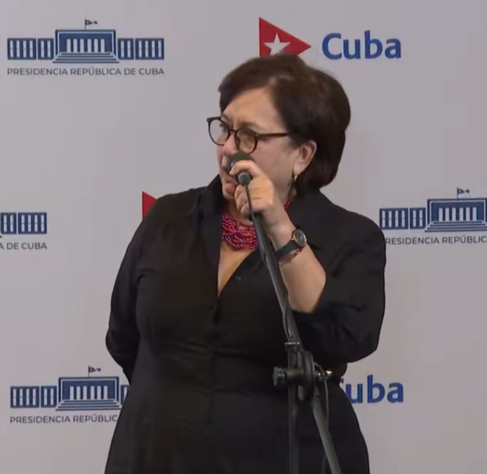 La periodista oficialista Arleen Rodríguez Derivet, quien fungió como moderadora del encuentro, apareció en pantalla con un reloj que marcaba una hora incompatible con la versión gubernamental de que la transmisión ocurría en directo durante la mañana.
